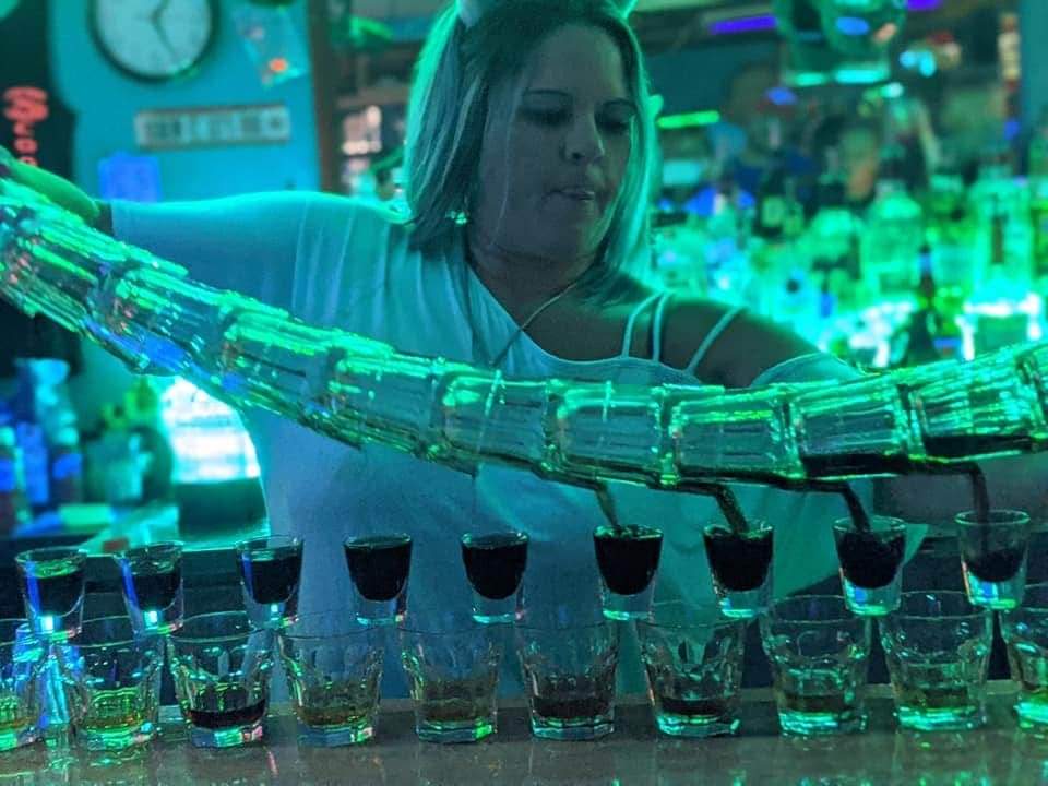 My brother and I were in there one night they had an event going on with glow-in-the-dark paint neon lights and squirt pew pew lol I ended up getting a hold of one of the water squirters and it was on from there out lol. I ended up dancing on the bar like Coyote ugly for a moment. Overall great night and good pull pork nachos.